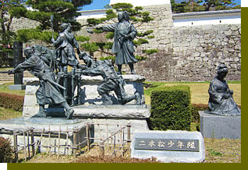 戊辰の役(戊辰戦争)でふるさとを守るために若い命を散らした、二本松少年隊を顕彰する群像。二本松市名誉市民であります彫刻家・橋本堅太郎氏に依頼して制作したものです。