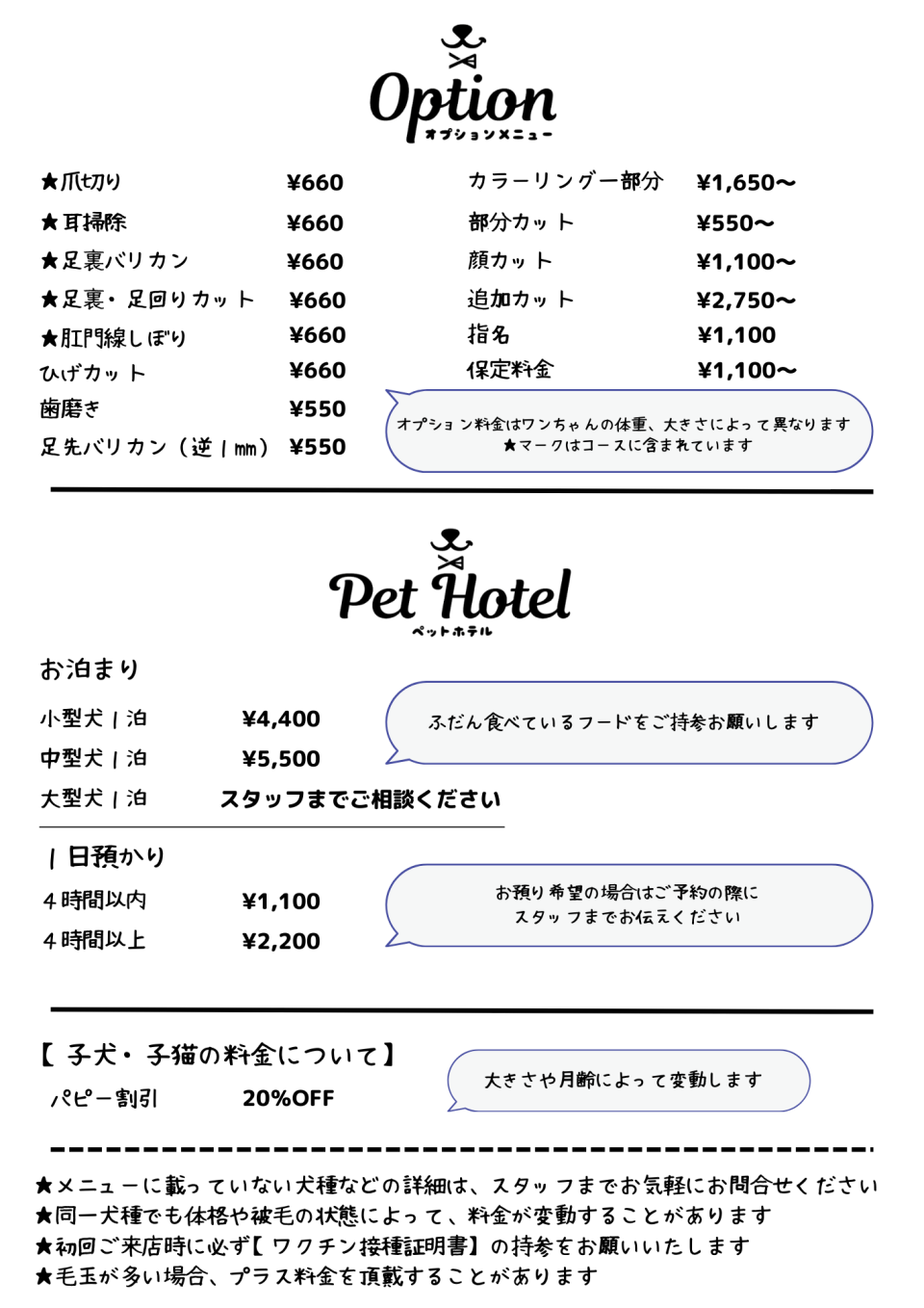 アニマル保原店ではお客様に安心していただけるよう、スタッフの技術向上と価格の維持に勤めて参りましたが、施術に関する原料の高騰に伴って、現行価格でのサービスの提供が難しくなっております。