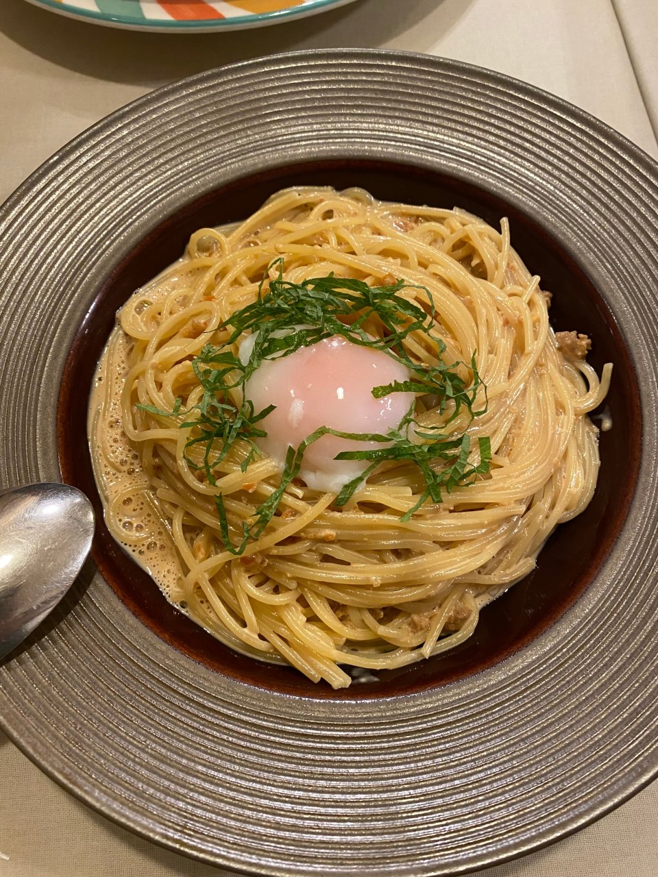 これは伊達鶏と八丁味噌のカルボナーラ🍝