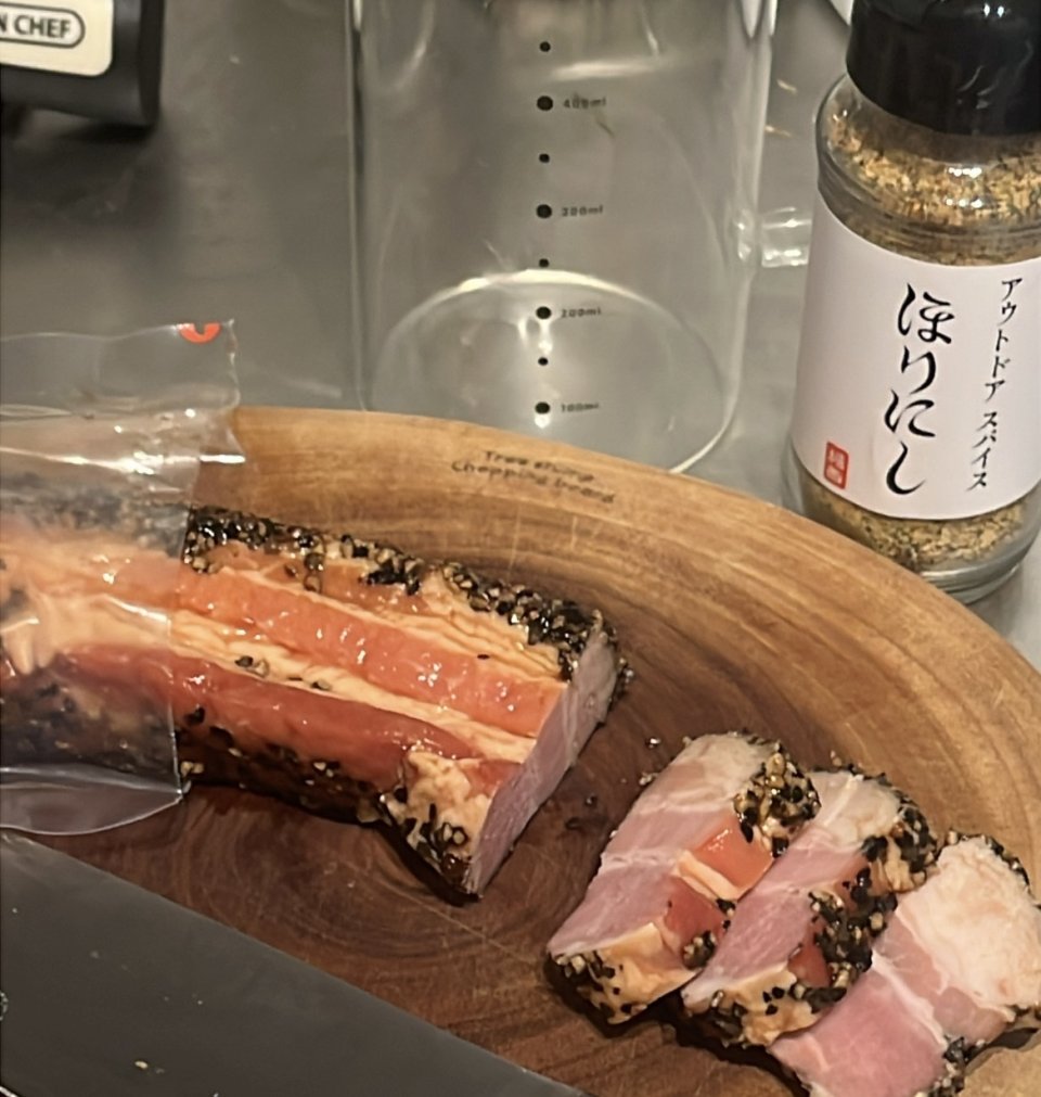 そのKALDIでブラックペッパーびっしりのベーコンとほりにしを調達しました🥓🧂