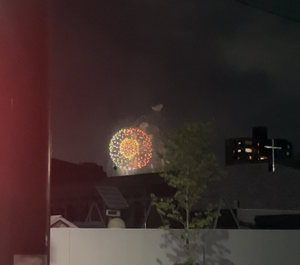 ちょと遠かったので高く上がった花火くらいしか見えなかったですが、