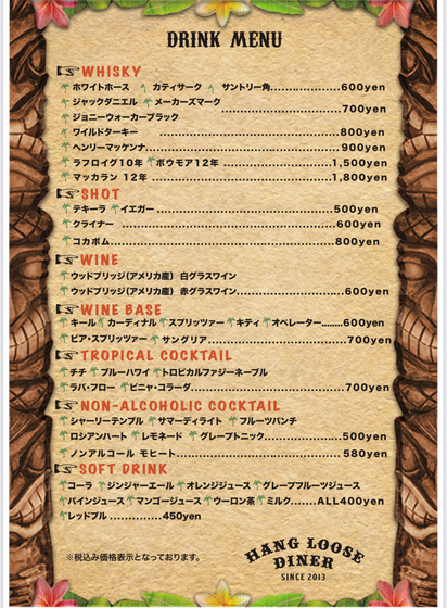 HANG LOOSE DINER(ハングルースダイナー) | 福島市・BAR・駅近・居酒屋