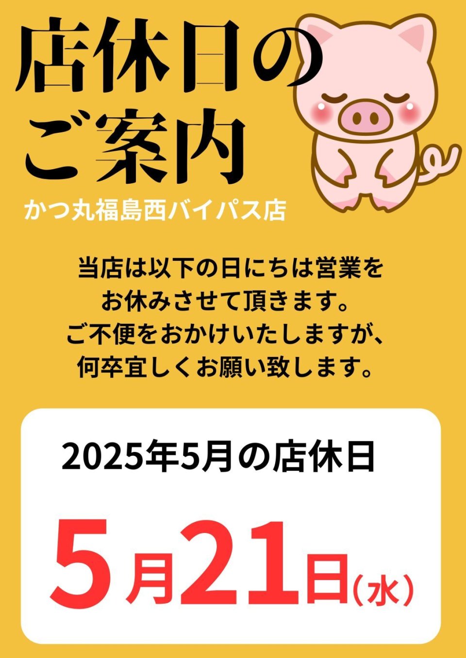 かつ丸、まるやま、まる家各店では、2025年4月26日~5月6日の期間はランチメニューのお取り扱いを休止させて頂きます。