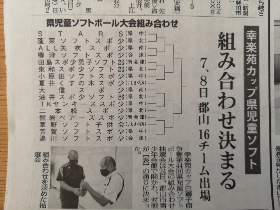 弊社がCSR活動の一環として応援している蓬莱ソフトボールスポーツ少年団 が出場します幸楽苑カップ県大会(8月7日(土)、8日(日))の組み合わせが決定いたしましたので、ご報告致します。
