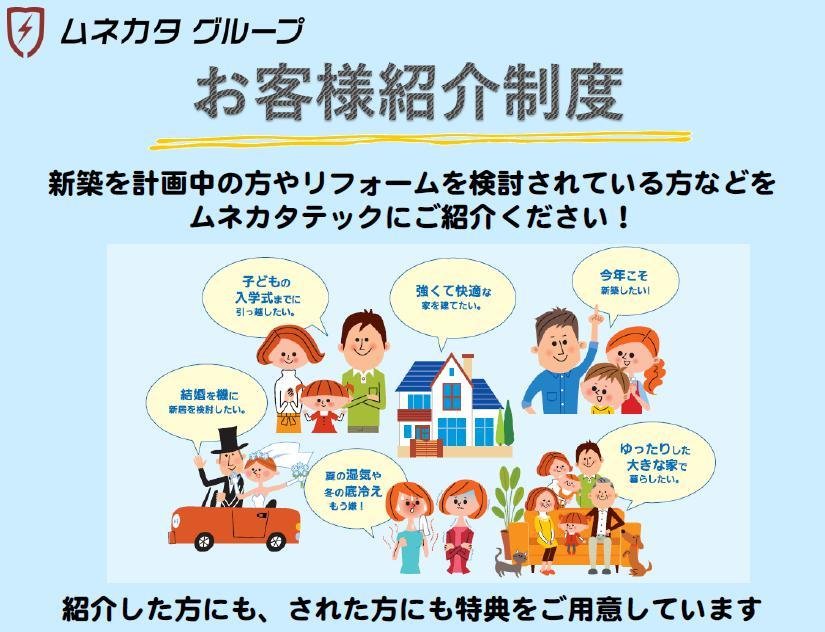 お客様にご紹介いただくと双方に特典が貰えますよ