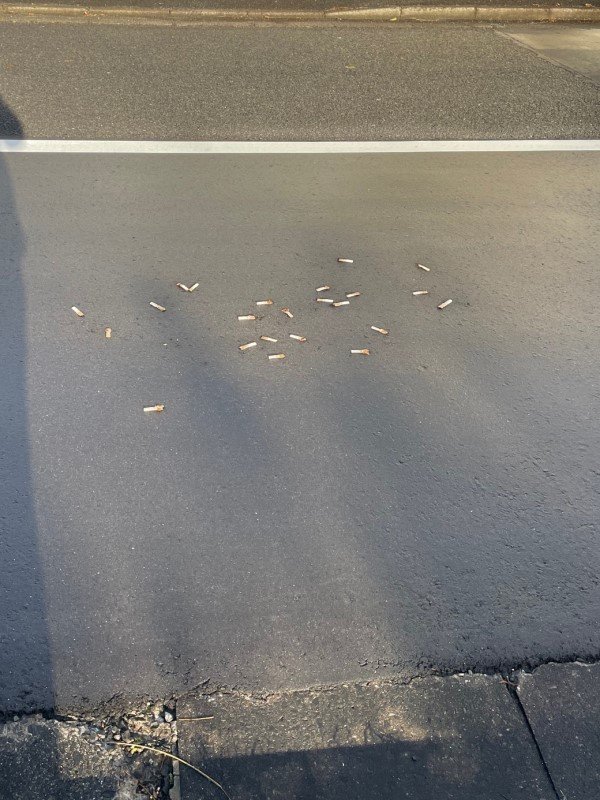道路にまき散らされたタバコ🚬の吸い殻です。