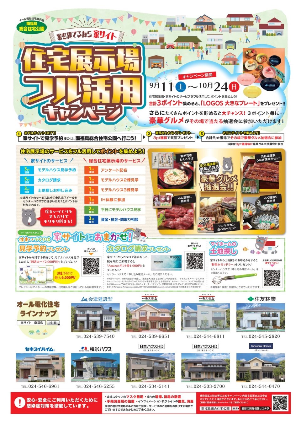 南福島総合住宅公園では、9月11日(土)から「家サイト・住宅展示場フル活用キャンペーン」を開催します!