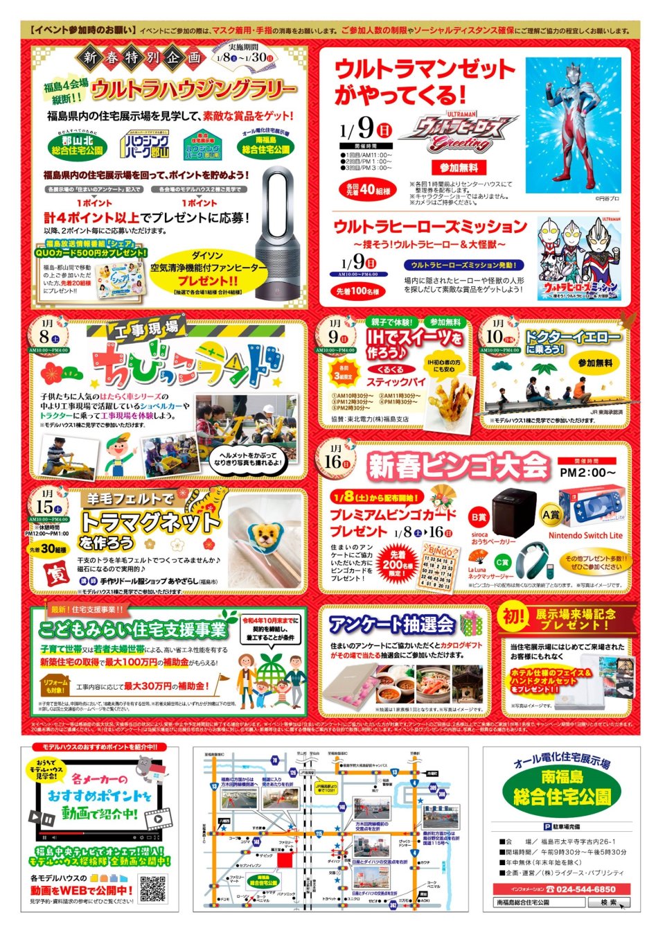 南福島総合住宅公園では、1月8日(土)~16日(日)まで「新春ハウジングフェア」を開催!この機会に是非ご来場ください!今なら、「家サイト」か...