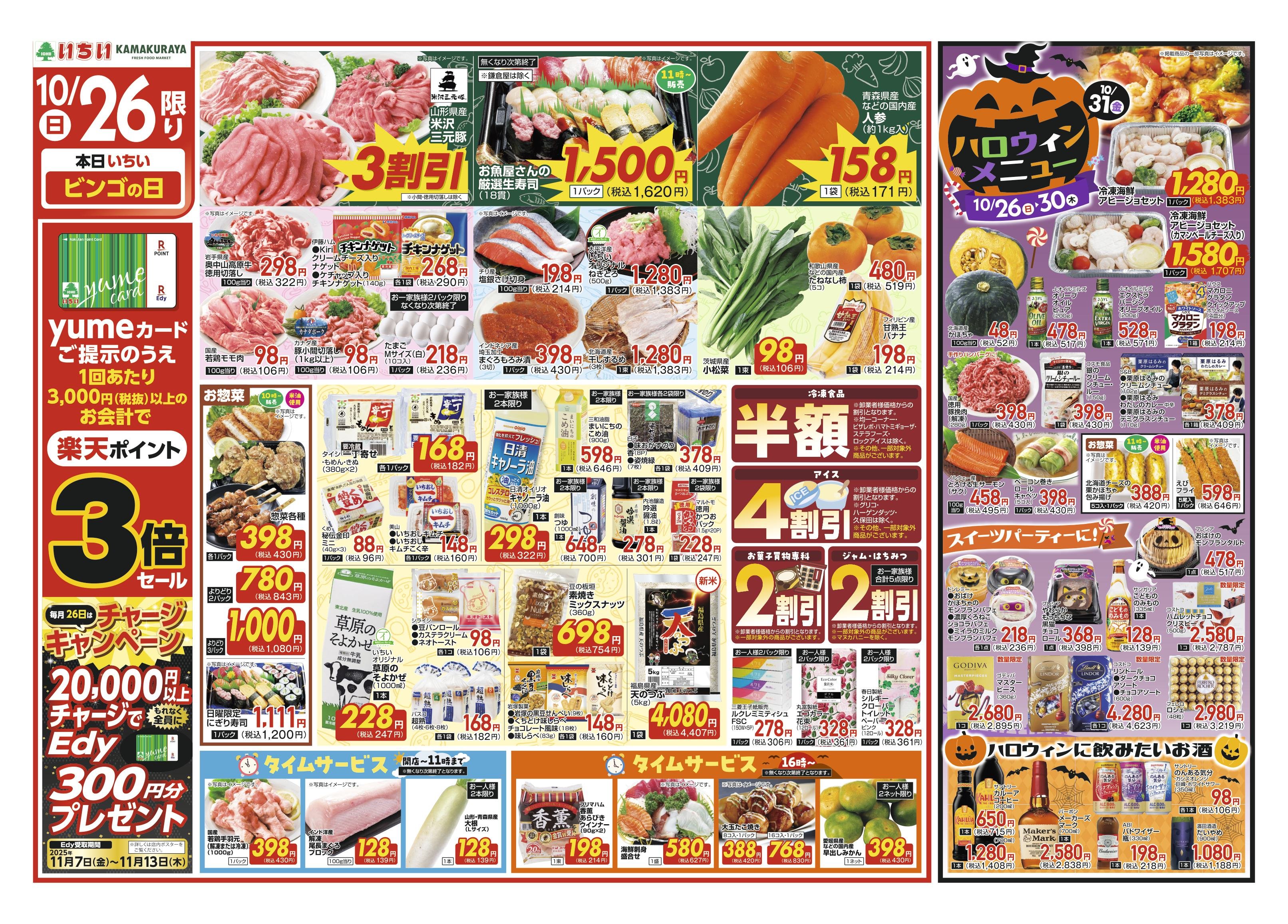 10月26日~30日★ハロウィンメニュー★米沢三元豚3割引!お肉のよりどりセール!