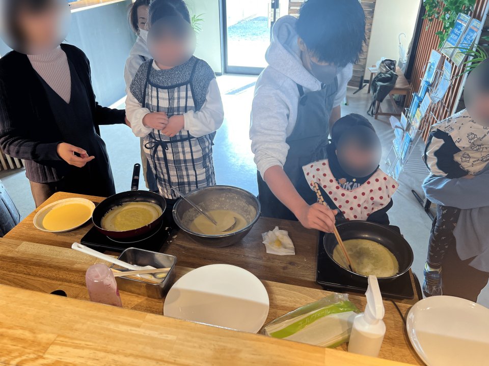 自分でフライパンを使って生地を焼く体験ブースもご用意しました。