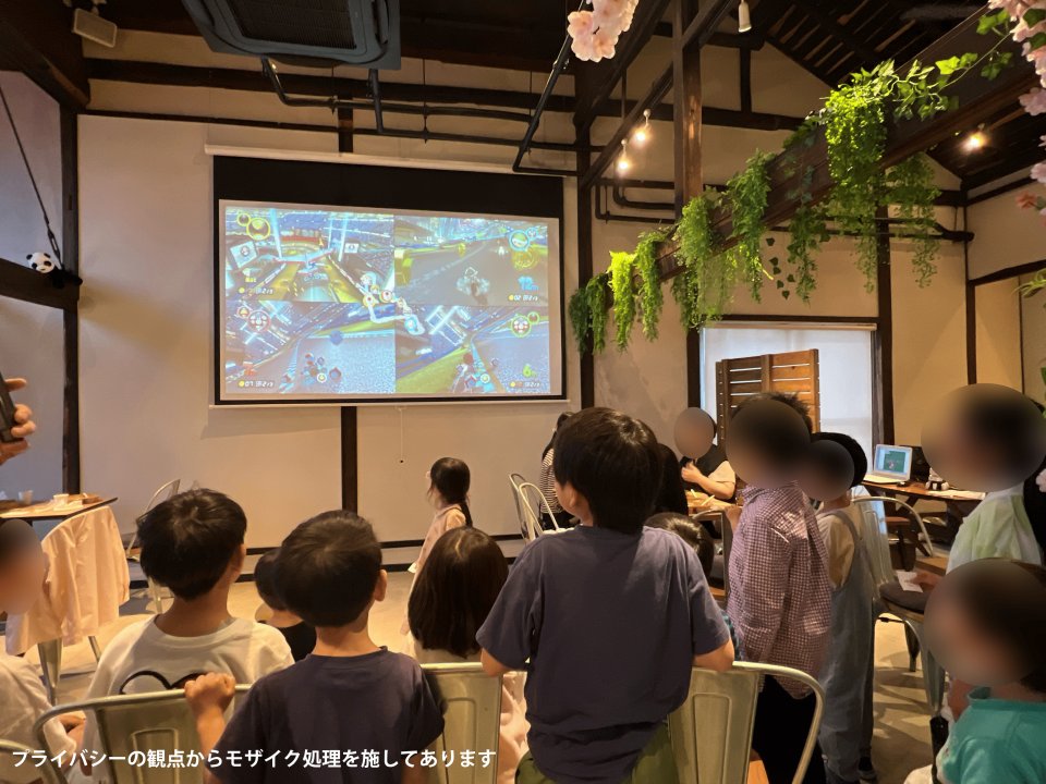AZUMA36cafeの100インチモニターを使用し、トーナメント形式でレースゲームを体験してもらいました!