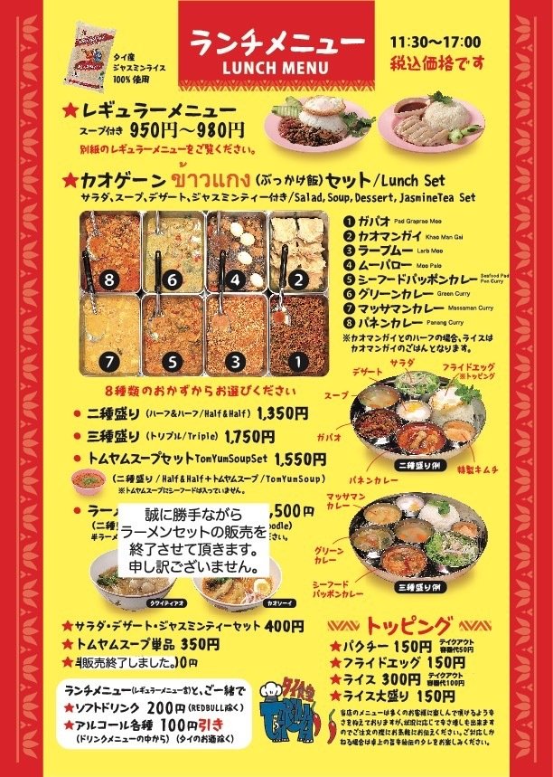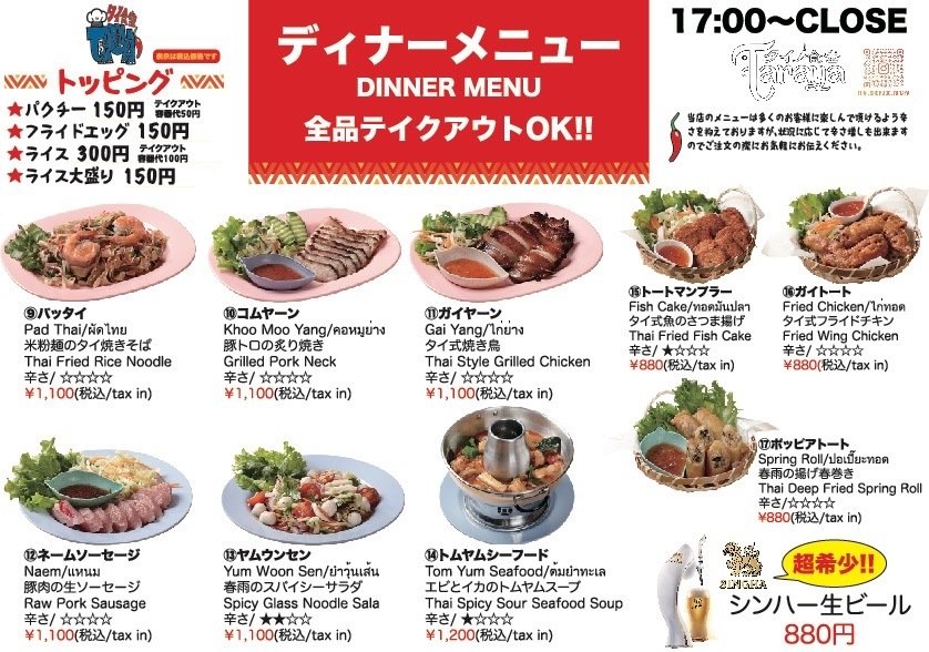 タイビール含む全てのメニューをご利用いただけます。