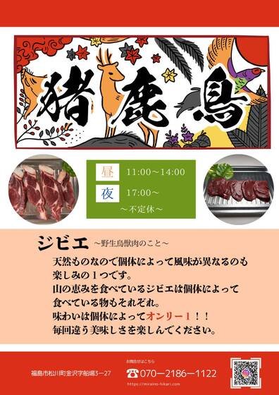 福島市のジビエ料理・焼肉専門店 猪鹿鳥