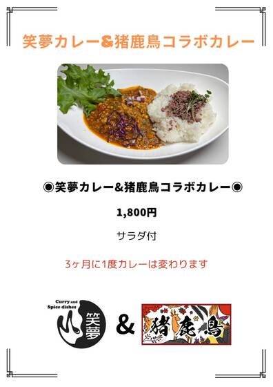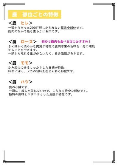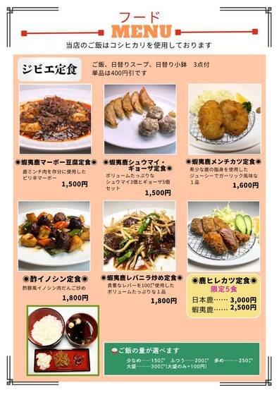 | 店名 | ジビエ・焼肉料理 猪鹿鳥 |