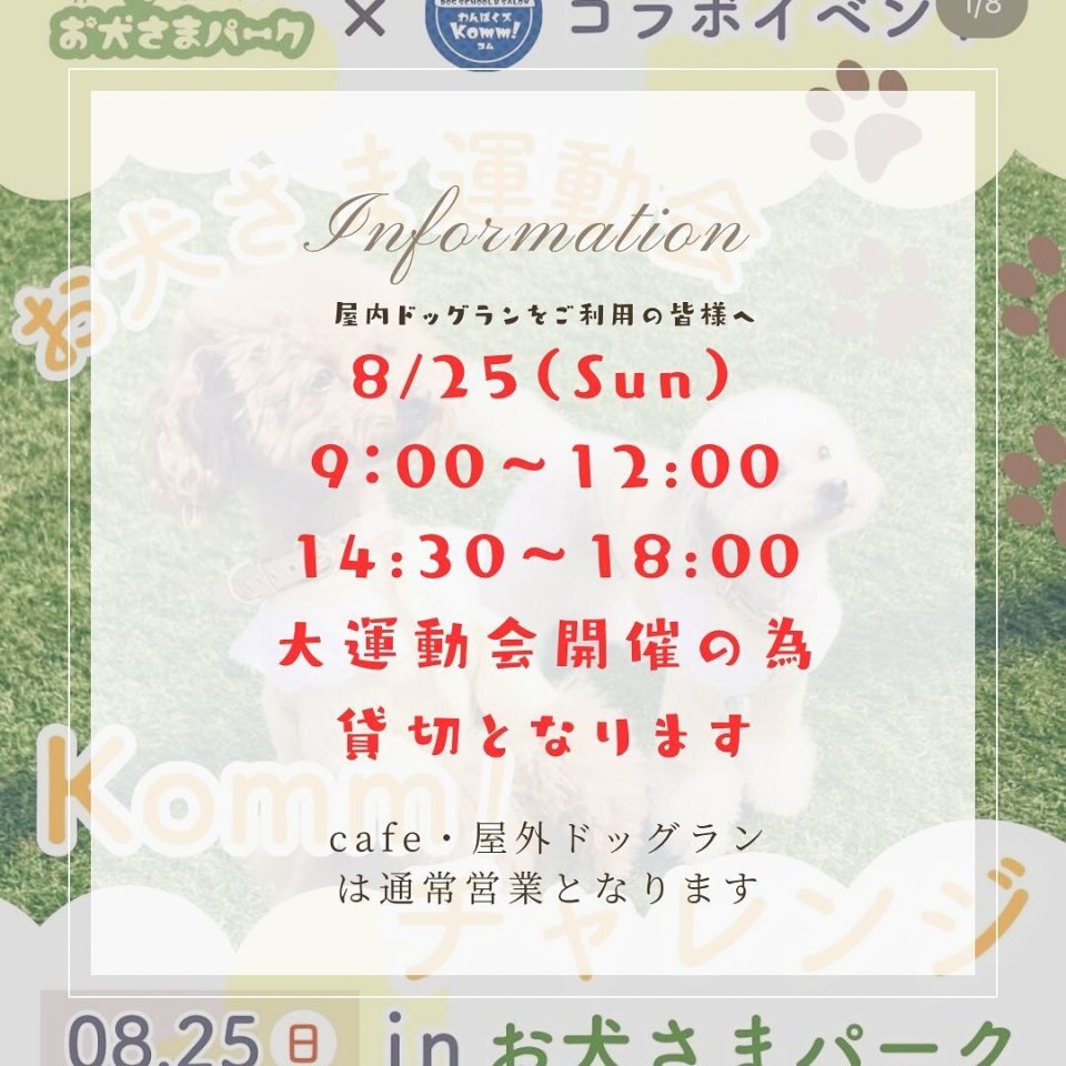 【12:00〜14:30】は屋内ドッグランのご利用が可能です🐶
