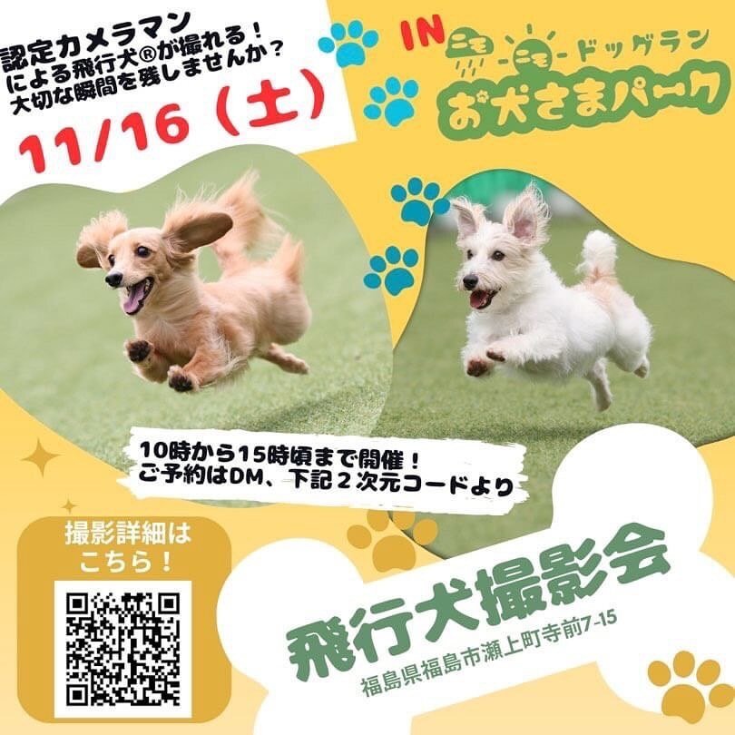 飛行犬撮影会のお知らせ📢🌟 11月16日(土)❄️冬のマルシェ❄️