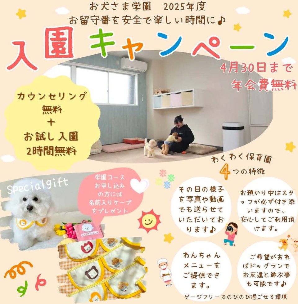 お犬さま学園ではケージレスでのびのびと過ごせます🐶