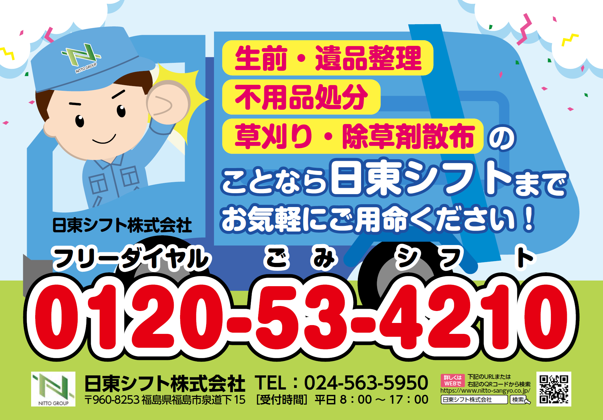 お気軽にご連絡下さい! 広告有効期限:2025.05.13~2025.12.31 粗大ごみ お引越し 不用品処分 お片付け 操作説明 マウスの操作 拡大縮小 チラシ画像の上でマウスの左ボタンをクリックするとチラシを拡大・縮小できます。 スクロール チラシ画像の上でマウスの左ボタンを押したままマウスを動かすとチラシをスクロールできます。 マウスホイール チラシ画像の上でマウスホイールを回転させるとチラシを拡大・縮小できます。 チラシの印刷 チラシを印刷する場合、印刷ボタンを押すと画像が表示されますのでブラウザの印刷機能から用紙や倍率を調整して印刷してください。 対応ブラウザ:InternetExplorer11、Microsoft Edge、Google Chrome、Firefox、Safari 1 / 1 同じジャンルのチラシはこちら(新着順) 初売り塗装祭!創業98周年記念! キャンペーン お得情報 プロタイムズ福島店 株式会社郡山塗装