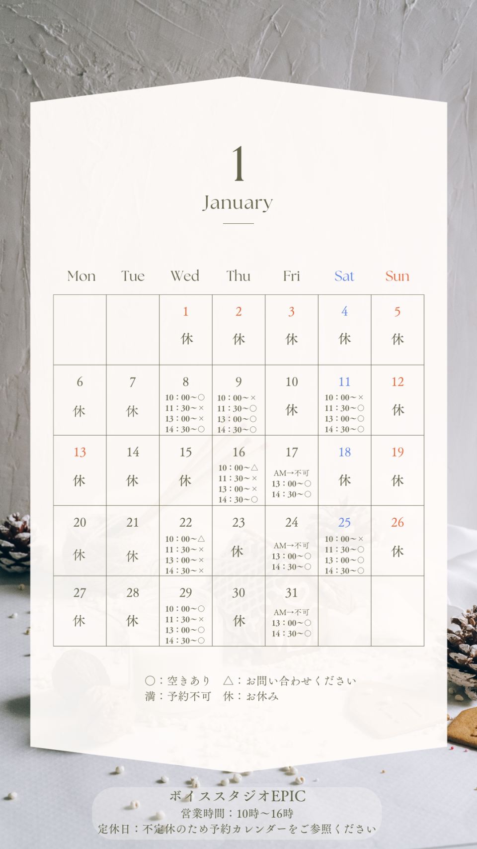 スタジオは1月8日(水)よりレッスン再開いたしました🎤
