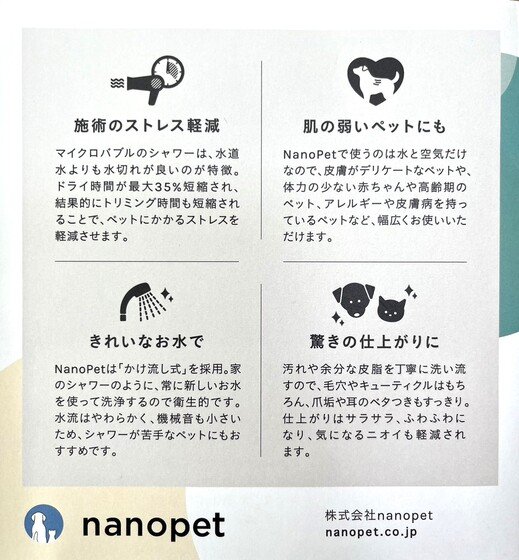 ナノペットはシャワーベッドタイプとは異なりマイナスイオンを帯びた水を生成する装置です。