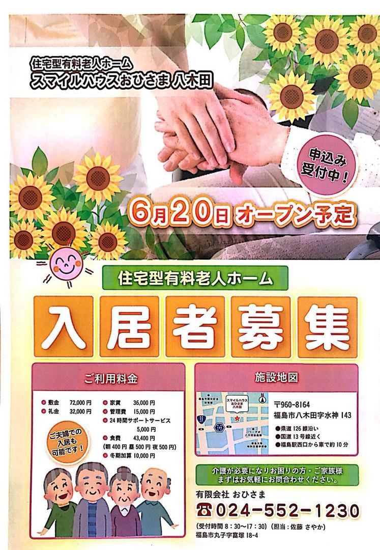 住宅型有料老人ホーム スマイルハウスおひさま八木田、お申し込み受付中です☆