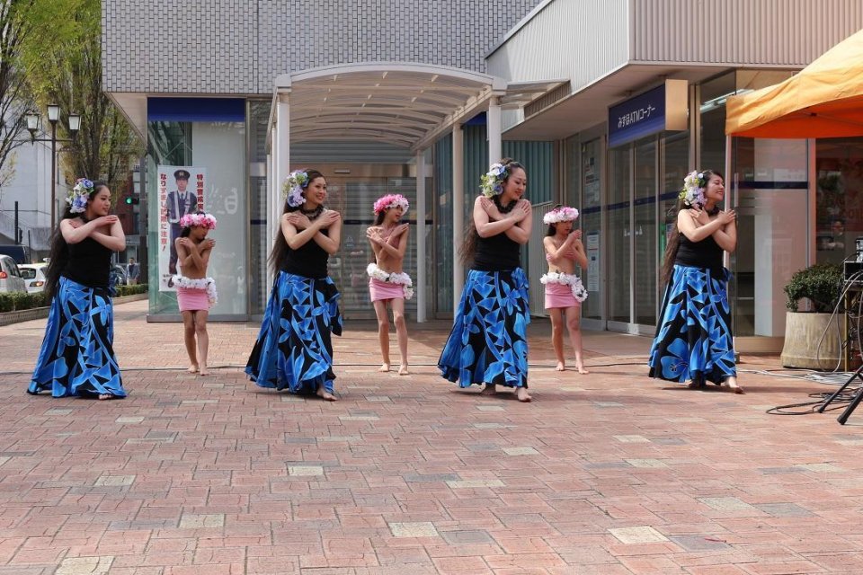駅前広場では、フラダンスのショーなどが行われており、たくさんの人達がステージを楽しんでおられました。