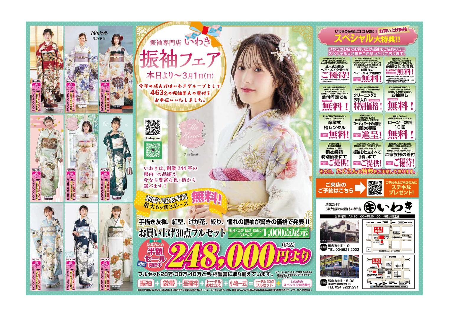 福島市と郡山市に店舗を構える着物のいわきは、江戸時代から続く大型きもの専門店です。