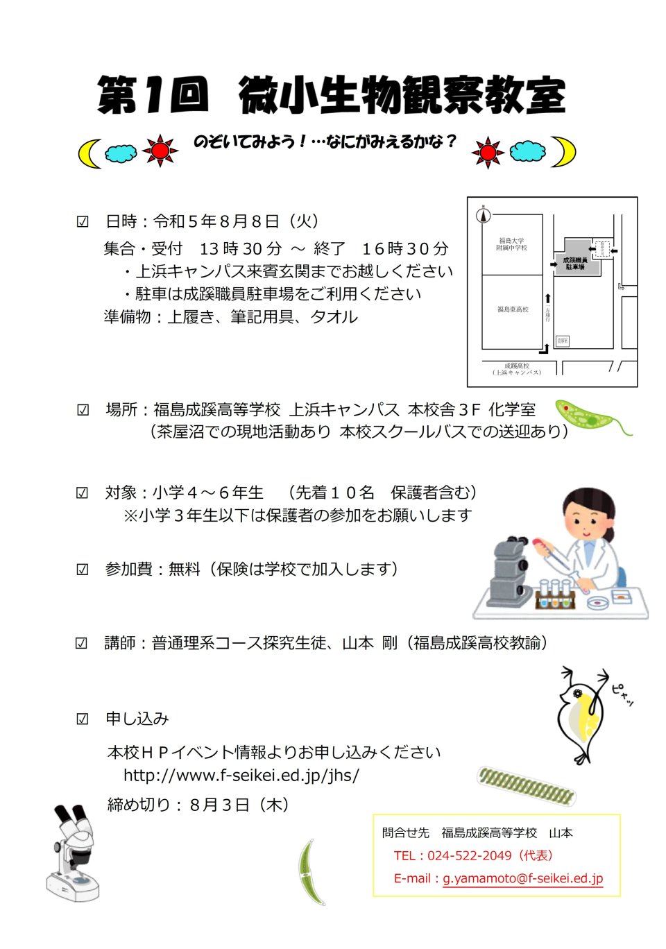 8月8日㈫13:30~16:30に「微小生物観察教室」を行います。