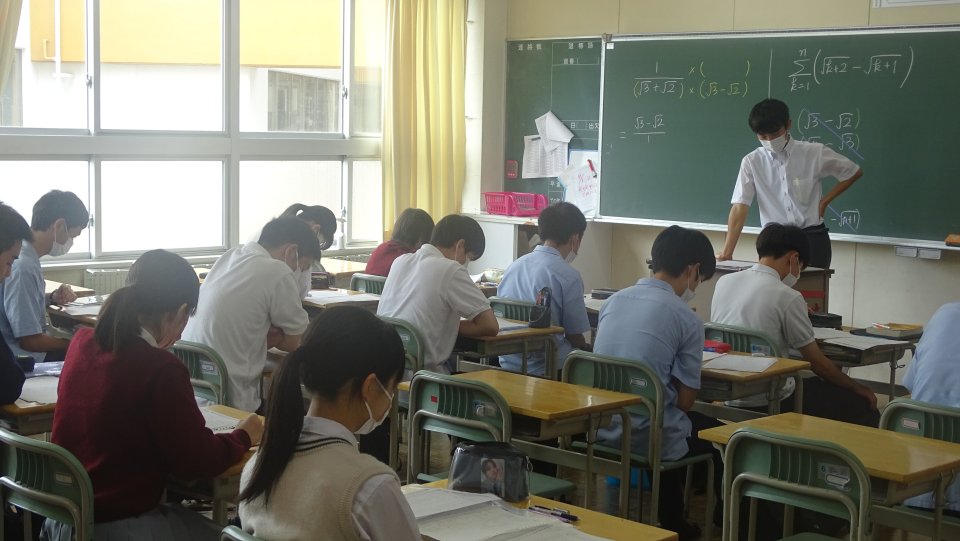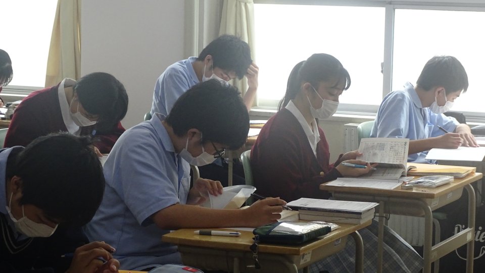 本来はこの時期は夏季学習合宿を行っているのですが、コロナ感染症の拡大状況に配慮し、校内での学習会に切り替えて実施しています。