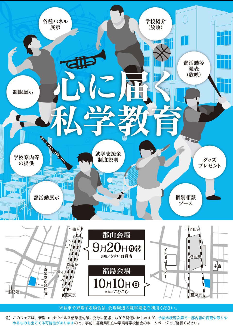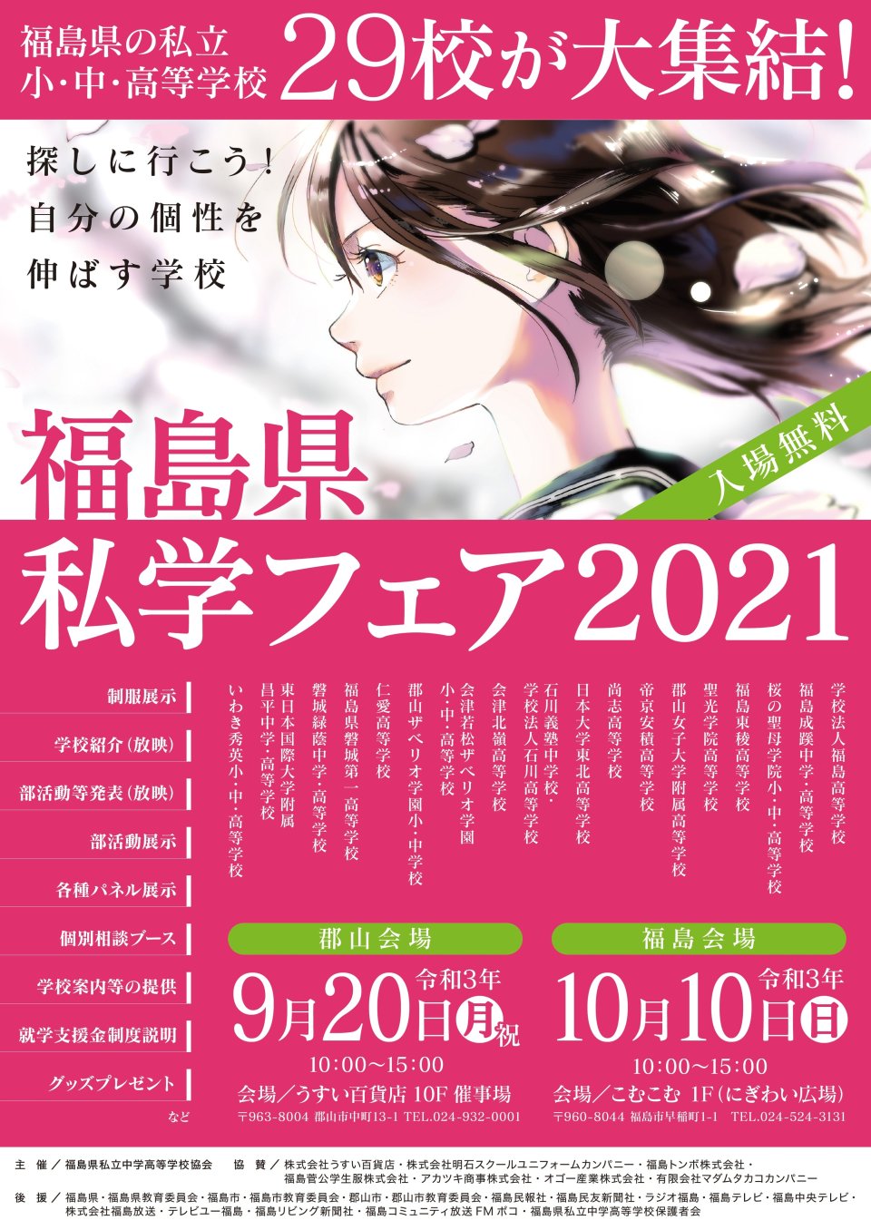 福島県私学フェア2021郡山会場が9月20日㈰10時~15時に郡山駅前のうすい百貨店10F催事場で開催されます。