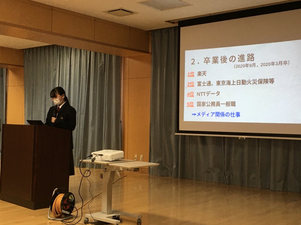 中学2年生の総合・HRの時間で、「職業・大学調べ発表会」がクラス内でおこなわれました。