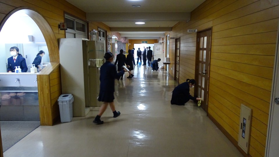 日本では清掃を日課としている学校が多いのですが、これは掃除を重要と考える日本文化の一つの側面です。清掃も教育の一環とすることで、家や職場でも自分のテリトリーを自分で清潔に保つということが習慣化されていきます。(習慣化されない人もいるようですが(笑))欧米では清掃は業者がやる学校が多いようです。本校生は総じて清掃を熱心に行います。校訓である桃李の精神や、普段の教育の賜物と思います。