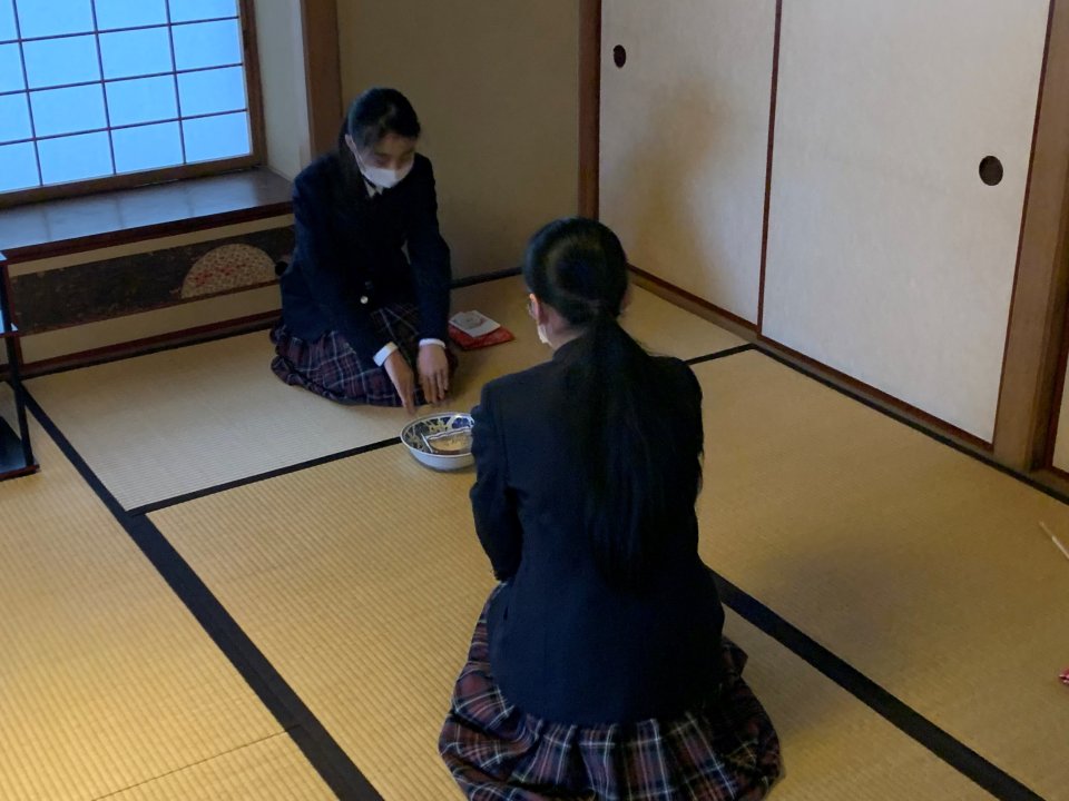 齋藤宗緑先生に個別指導を受けながら、お点前の練習です。