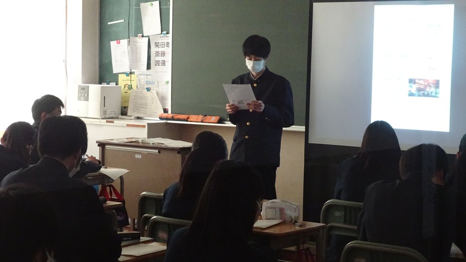 今回はクラス内で、プリントとプレゼンソフトにより発表を行い、お互いに評価をしました。今回の結果を基に各クラスの上位2名が全体発表会に臨みます。その際にはまた改めてレポートしたいと思います。