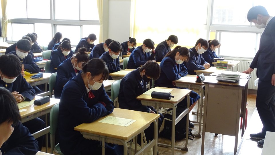大掃除をして1年の汚れを落としたのち、終業式をおこないました。今回も放送による式となりましたが、校長先生の話、表彰、春休みの生活の留意点など、生徒は真剣に耳を傾けていました。