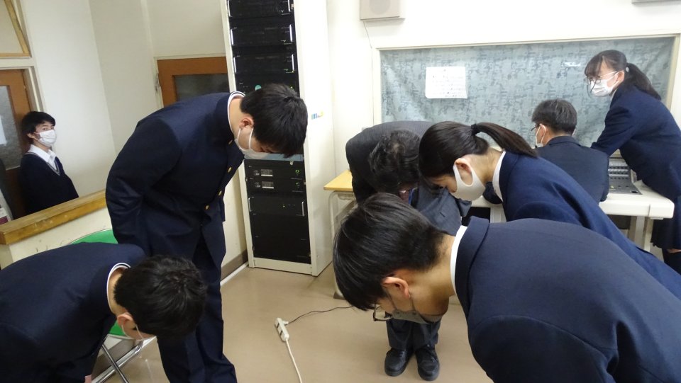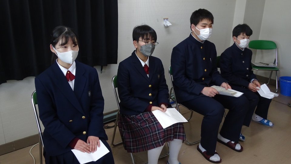 放送室で、校長先生の挨拶の後、在校生代表として中学校、高校のそれぞれの生徒会長が歓迎の言葉を述べ、その後、新入生代表として中学1年、高校1年の代表生徒がお礼の言葉を述べました。