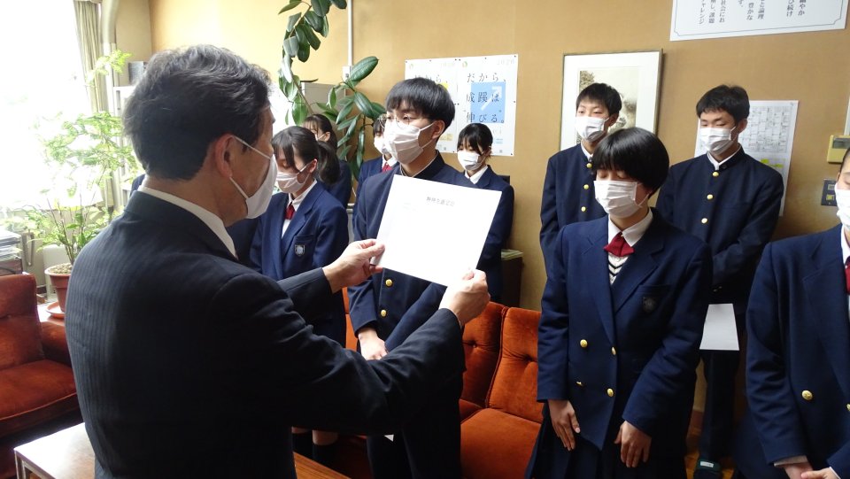 4月6日㈬、校内特待生の認定賞授与がありました。本来であれば全校生徒の前で行われるのですが、現在、全校規模の集会を控えているため、校長室での授与式となりました。