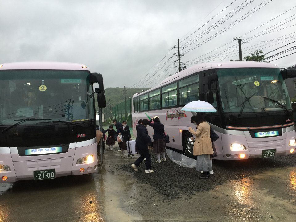 (本校へ帰ってきたところです。雨の中お迎えありがとうございました)