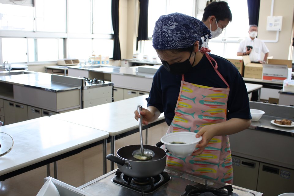味噌汁は鰹節とこぶから出汁をとりました。(本格的です)先生は残った鰹節とこぶでふりかけを作ってくれました。食品ロスを少なくする対策です。