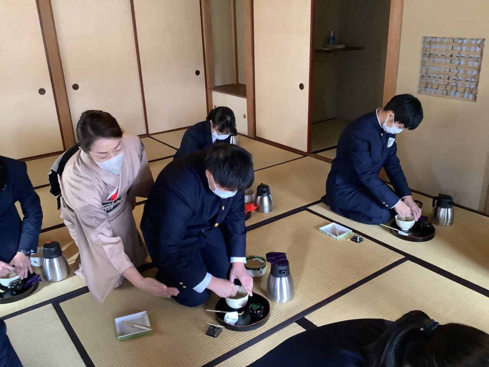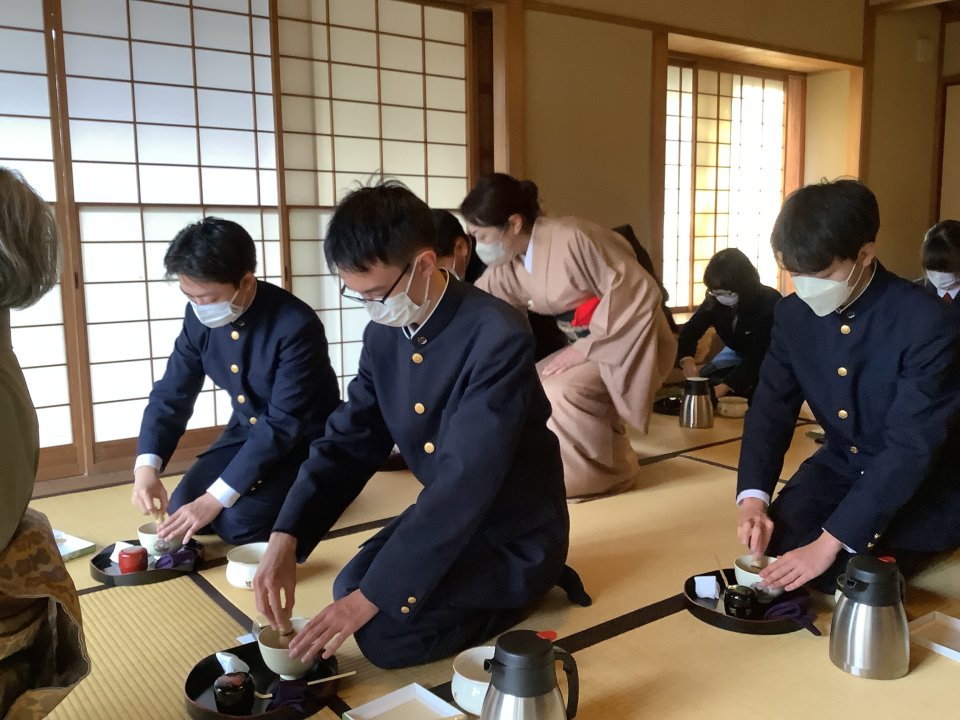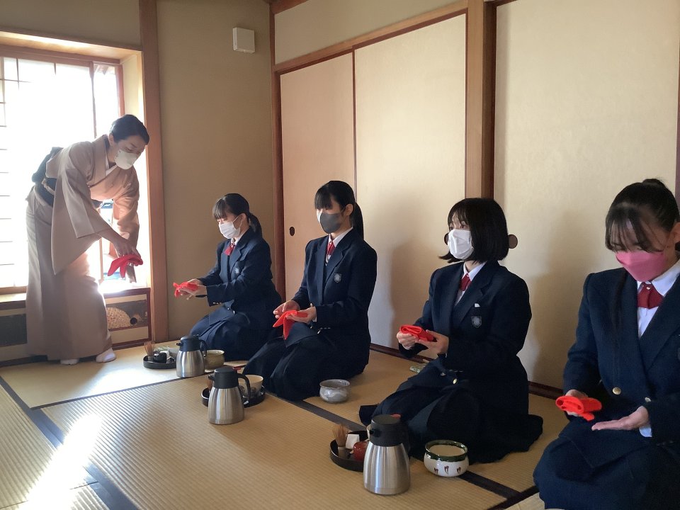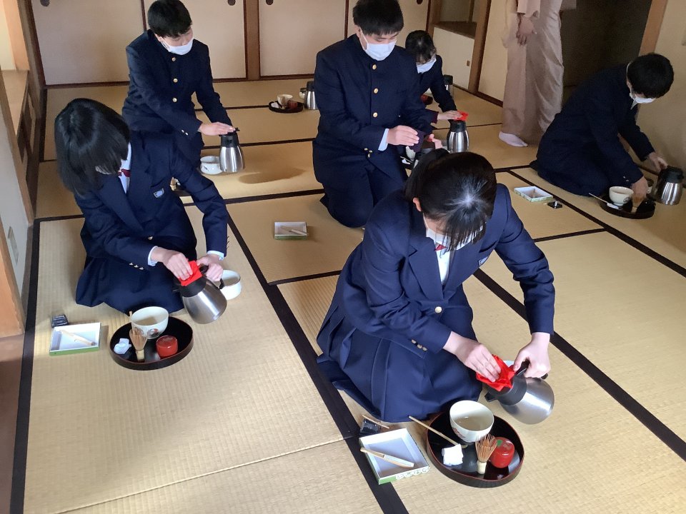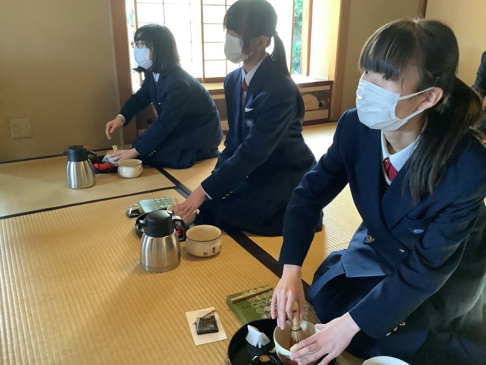 11月22日(火)、高校1年1組と高校2年1組の生徒たちが学校茶道を行いました。