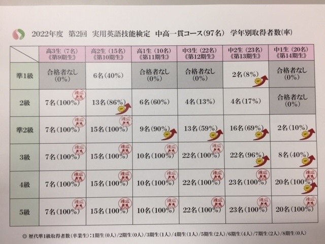 本日は本校中学生の英検取得状況を紹介しようと思います。