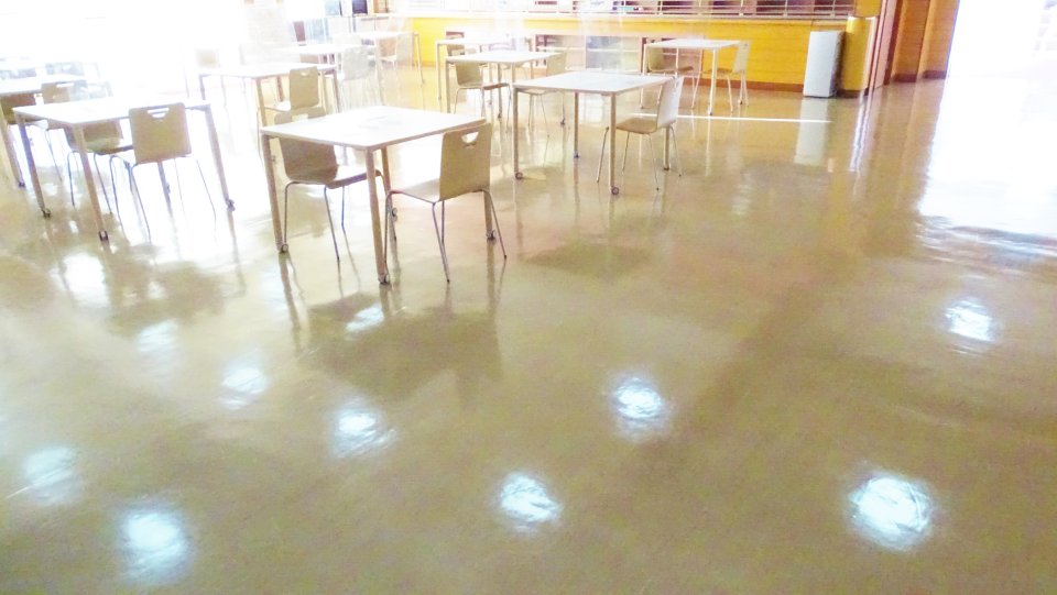 年に1回の、業者さんによるワックスがけが進んでいて、学校はピカピカです。
