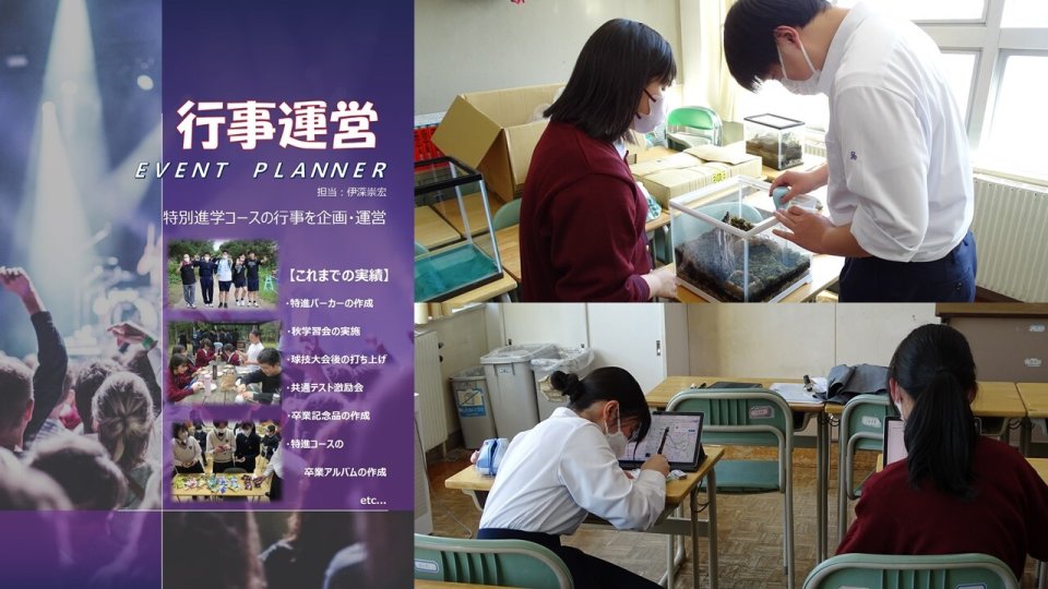 特進コース全体に関わる行事や活動の企画運営をします。(なぜか)アクアリウムの制作と、次のコース行事に向けての企画検討をしていました。