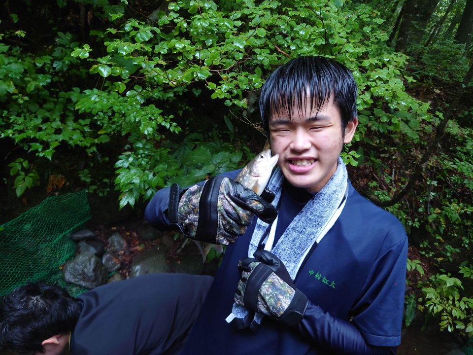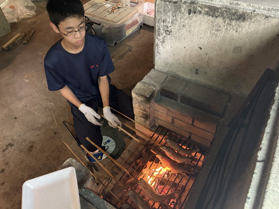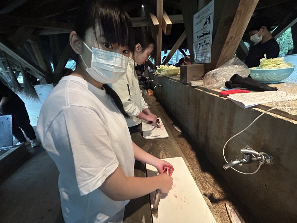 先ほどつかまえたイワナの下準備も自分たちでおこないました。