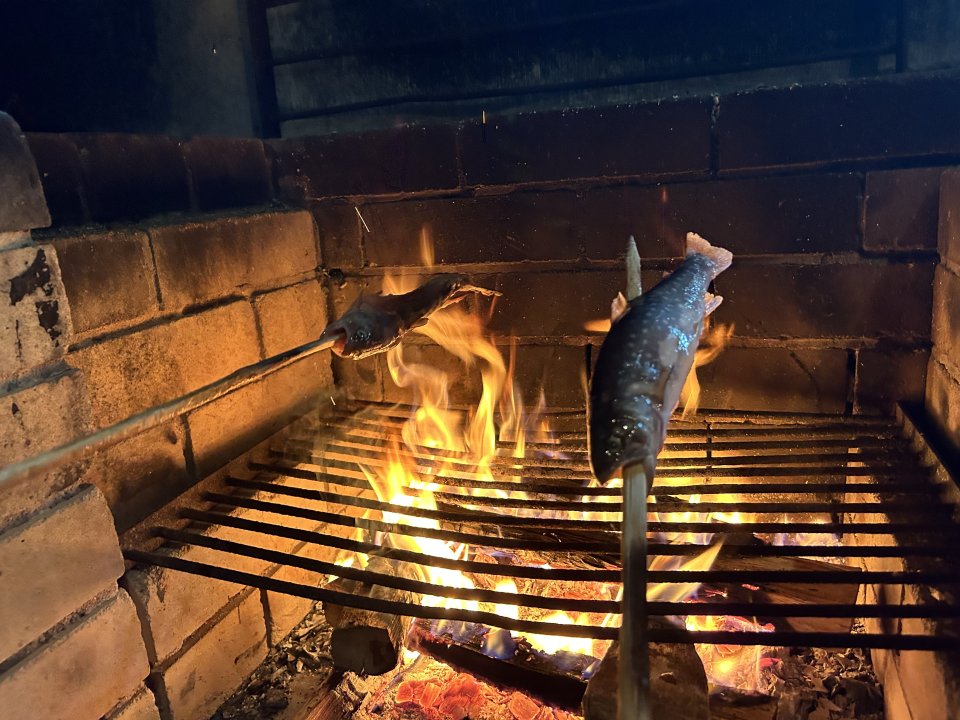 竹串に刺し、ホクホクのイワナの塩焼きが完成しました。