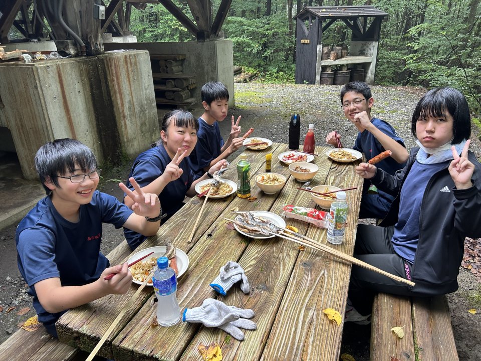 同時に焼きそばとフランクフルトも調理し、お腹いっぱいの昼食となりました!