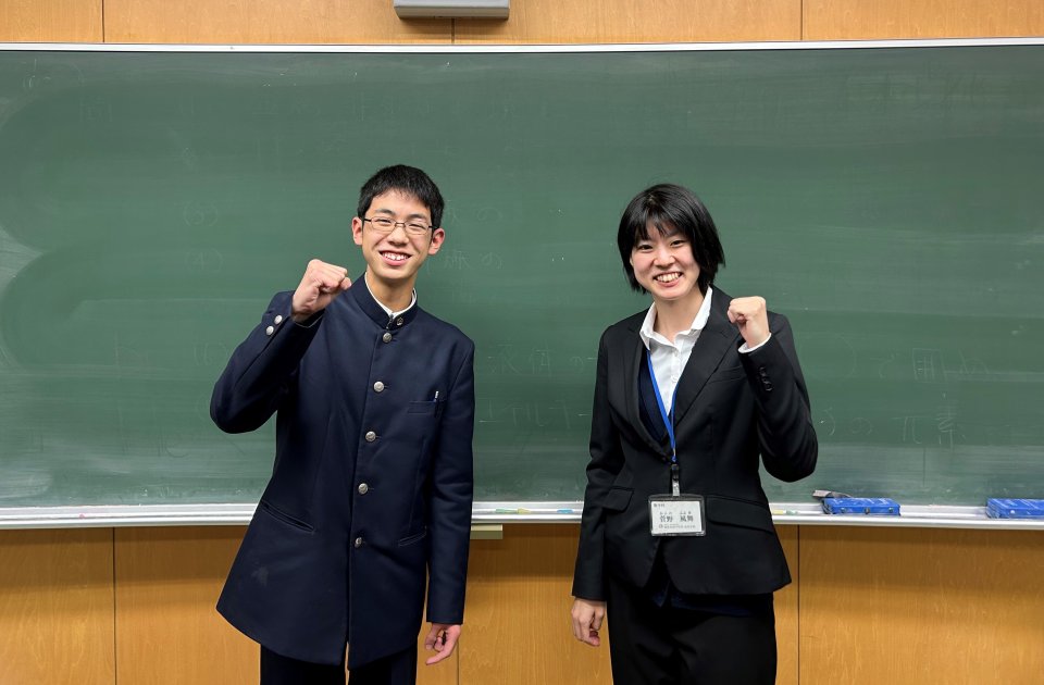 (中学2年生の彼は数学の担当の先生と一緒に写してみました)
