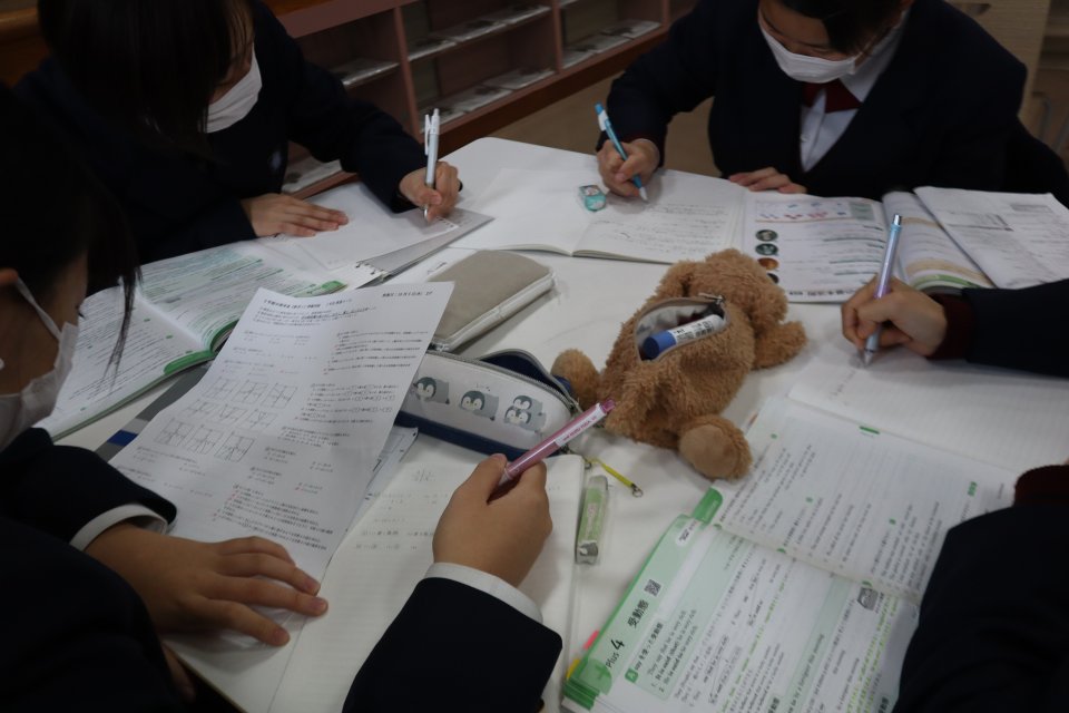 学年での取り組みも様々行われています。わからないことを一つひとつわかるように勉強していくのですが、科目の多い期末考査は計画的に行わないと思うように結果が出てきません。