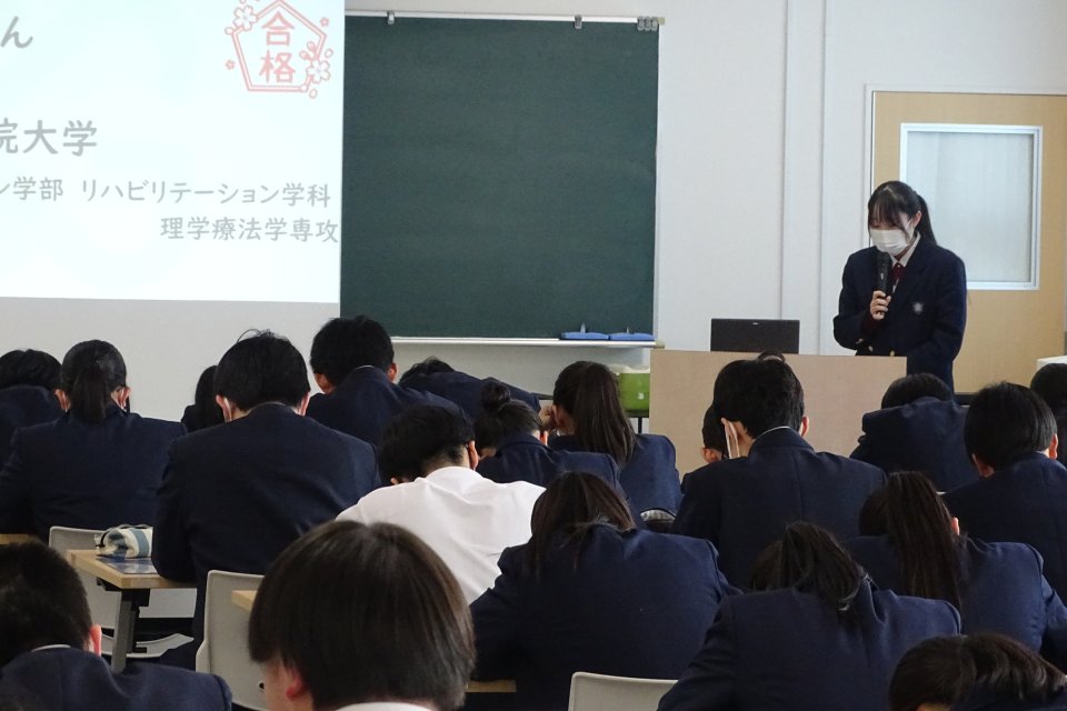 普通コースは推薦型、総合型で受験して合格が決まっている生徒が多く、また、2月からは自宅学習となるため、この時期に「進路体験を聞く会」を実施しました。