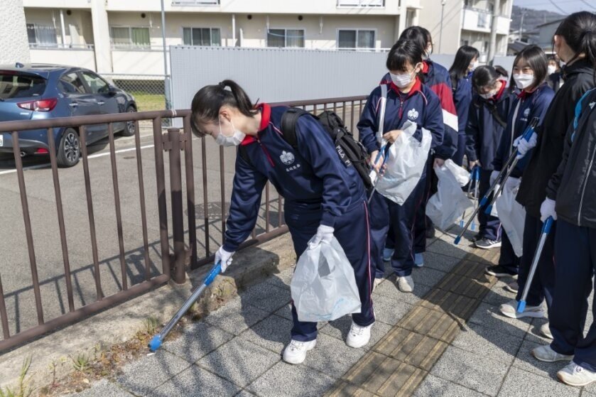 観光客の方々から「どこの高校生?」「地元の高校生がきれいにしてくれるから気持ち良くお花見できるよ。」と声をかけられ、生徒たちは「何か良いことすると気持ちいいね。」と嬉しそうでした。